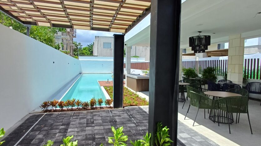 Lindo departamento de 1 recamara con closet y A/A, 2 baños completos, bonita área de TV, área de lavado, cocina equipada, sala y comedor con A/A, balcón con linda vista. Disfrutará de las siguientes amenidades: Alberca con canal de nado, área social con barra a un lado de la alberca, cómoda área de asadores, fresco y luminoso gym y pequeña área de mascotas. Cuenta con un espacio de estacionamiento, también estacionamiento para visitas, elevador, caseta de seguridad, entrada y salida controlada.